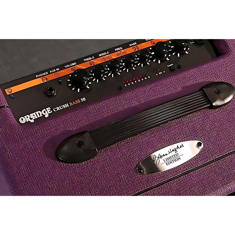 ORANGE Crush Bass 50 LTD Glenn Hughes — уникальный лимитированный бас-гитарный комбоусилитель, выпущенный в честь десятилетнего сотрудничества между брендом Orange и легендарным басистом Гленном Хьюзом. Доступен в фиолетовом цвете, этот усилитель не только привлекает своим эффектным дизайном, но и сочетает в себе высочайшее качество звука и передовые функции, характерные для профессионального оборудования.