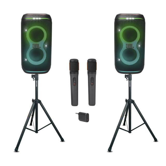 Данный комплект отлично подойдет для проведения небольших вечеринок. Это бюджетный вариант, который максимально упростит вопросы подключения, т.к. к нему не нужен микшерный пульт и колонки напрямую подключаются к любому устройству как через провод, так и по bluetooth. Отличная мобильность данного комплекта позволит поменять локацию в любой момент, а беспроводное соединение двух колонок исключит лишние провода. Кроме того, колонки являются портативными, поэтому они смогут играть без подключения в сеть, что также является серьезным преимуществом данного комплекта. Зачастую бывают проблемные локации и приходится применять различные генераторы или огромные удлинители, но в нашем случае это можно обойти, т.к. зарядки колонок хватает на достаточно долгое количество времени, причем аккумулятор является съёмным.